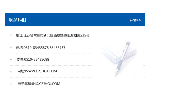 地址:常州市新北區友邦商務大廈1幢16、17層  電話:0519-85101652  傳真:0519-85112595  郵編:213022  網址:www.cz-jiayue_cn.glkcjy.com  郵箱:xiajifengaa@163.com